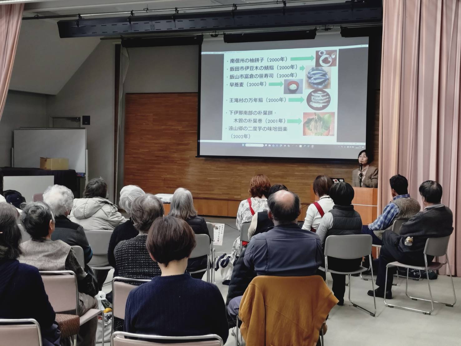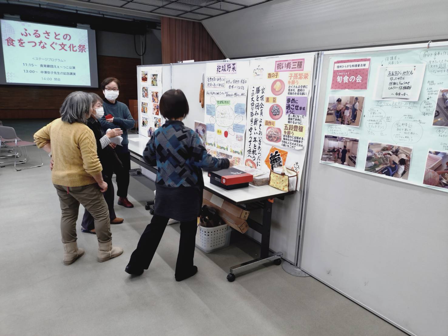 2026年1月25日(日)、長野市のふれあい福祉センター5階ホールで「信州ひらがな料理普及隊」が主催した「ふるさとの食をつなぐ文化祭」が開催されました。会場に展示された資料を来場者120人ほどが自由に見て回り、演劇と記念講演を楽しみました。