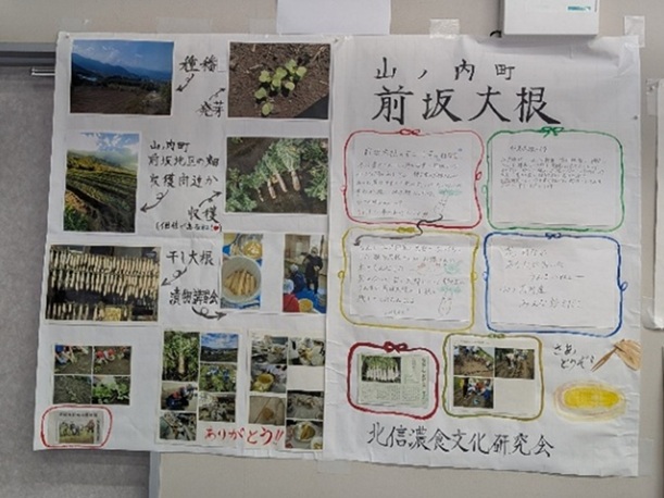 〇さまざまな展示や試食があり、長野の食文化について学ぶことができて良かった。みなさんから作り方などを聞かせていただき、とても楽しみながら学べた。