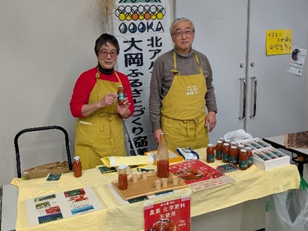 戸隠地域づくり協議会が長野市戸隠産の大豆と米でつくった味噌と豆菓子(写真左)、大岡ふるさとづくり協議会が農薬や化学肥料などを使わずに育てた長野市大岡産のミニ・トマト100%のトマトジュース(写真右)を紹介するコーナーも設けられていました。いずれも地域に増えている遊休農地を活用して作物を栽培し、地域で「新しいふるさとの味」を生み出しています。