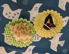 玄米といなご、蚕のさなぎを試食した小学6年の男の子は、「戦時中の食事は社会の教科書で勉強したことがあり、実際に食べてみたいと思っていました。体験できてよかったです」と話していました。