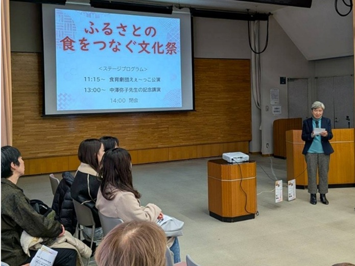 長野県立大学食健康学科の中澤弥子教授が「ふるさとの食をつなぐ」をテーマに記念講演を行いました。中澤教授は、先人たちの食に関する資料を収集・保存し、デジタルのデータにして発信していくことの重要性を強調しました。