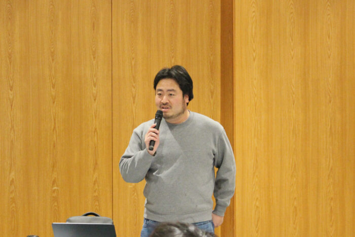 今回の講演ではメンバーの山崎哲也さんがファシリテーターを担い、同じくメンバーの勝又健彦さんと藤森雅史さんが活動内容やサウナの魅力について語りました。